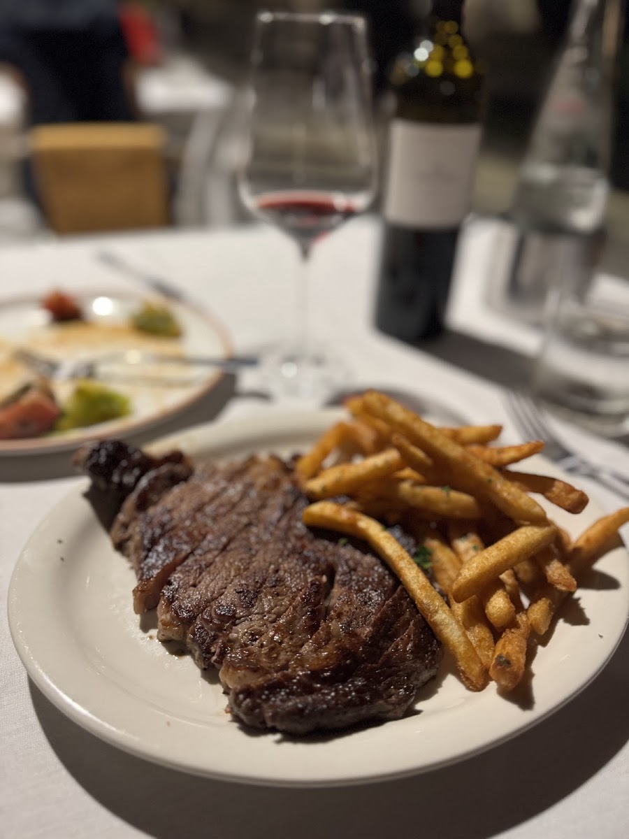 “ We ordered the unlimited steak frites. Service was great. We had reservations at 8 and received our first plate of steak frites around 8:55. Initially I was upset at the time because I thought they were trying to game the system by serving us the main course right when they close so we wouldn’t have time to re-up. Our server, Kendall, explained to us that we would be able to eat as much as we want so we felt relieved. We got our second plate and it was just enough for us. I think the ribeye could’ve used some more searing and a tad less salt, but overall we had a great experience here. The salad and bread were great too. ”